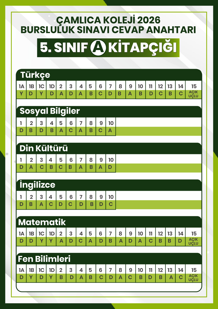 2026 Bursluluk Sınavı 5. SINIF CEVAP ANAHTARI