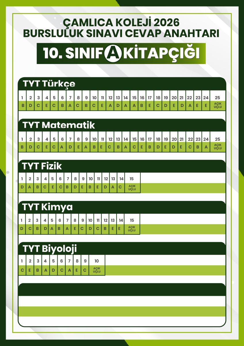 2026 Bursluluk Sınavı 10. SINIF CEVAP ANAHTARI