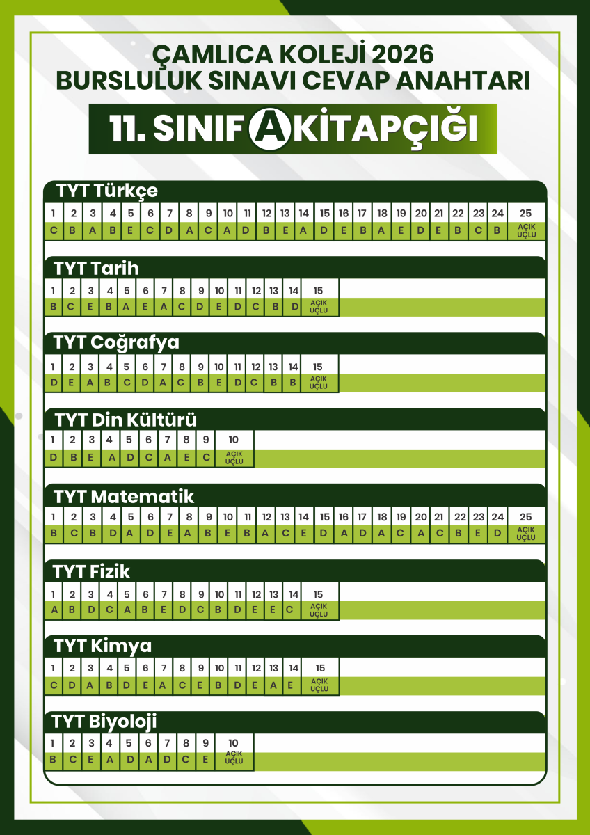 2026 Bursluluk Sınavı 11. SINIF CEVAP ANAHTARI