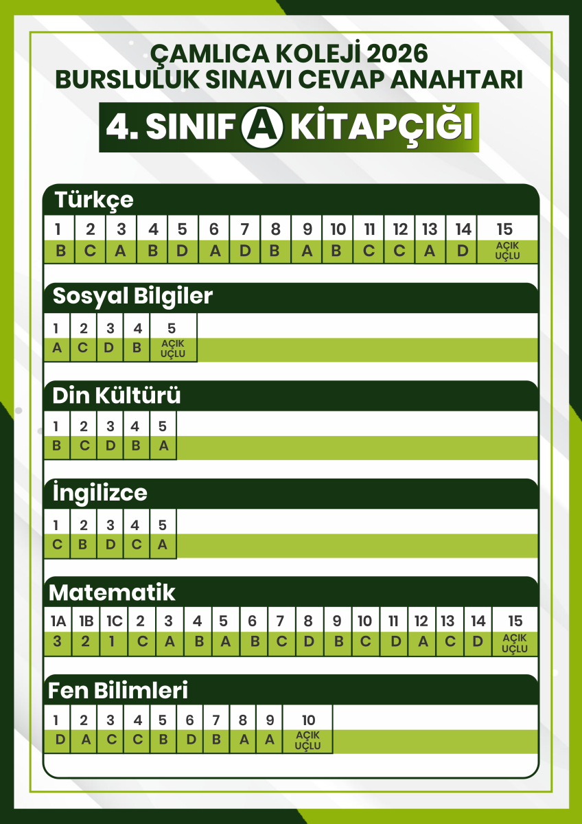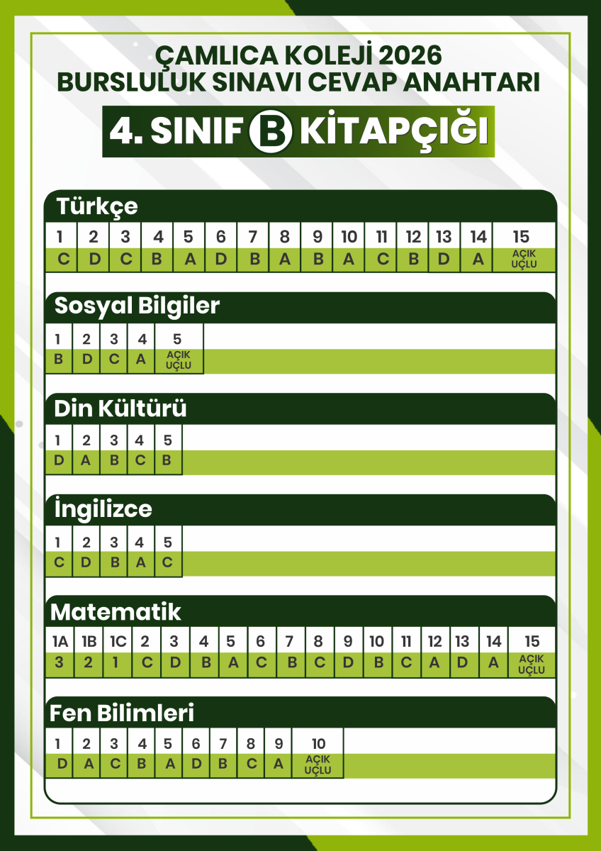 2026 Bursluluk Sınavı 4. SINIF CEVAP ANAHTARI