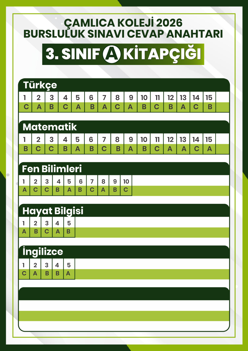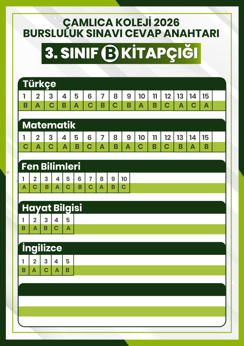 2026 Bursluluk Sınavı 3. SINIF CEVAP ANAHTARI