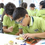 Çamlıca Okullarında öğrenciler Fen Bilimleri dersinde DNA laboratuvarında besinlerin içeriklerini iyot çözeltisi