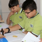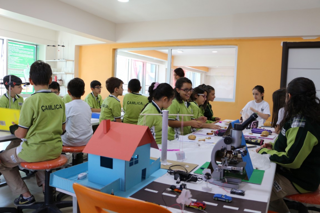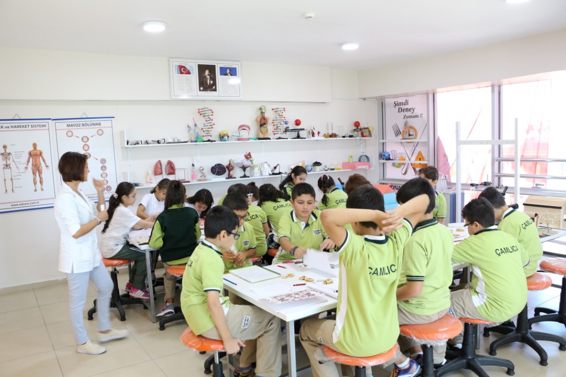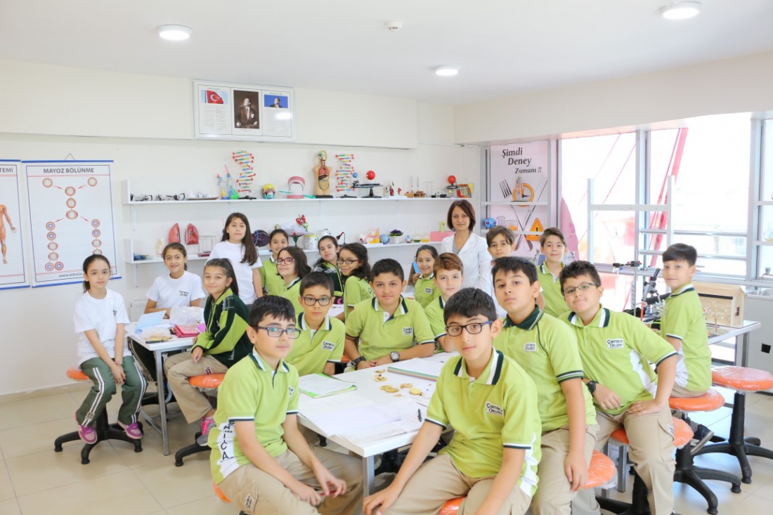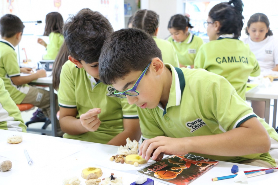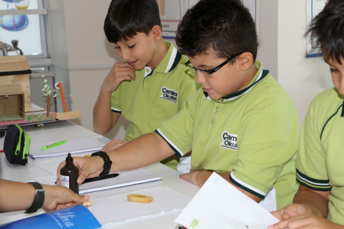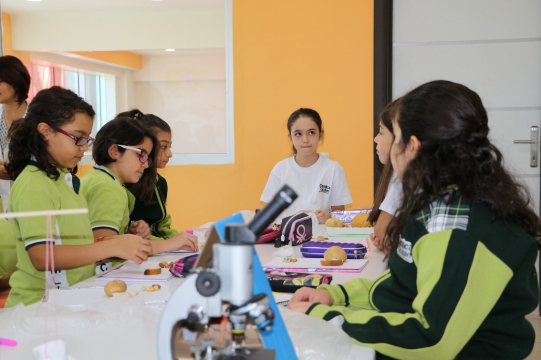 Çamlıca Okullarında öğrenciler Fen Bilimleri dersinde DNA laboratuvarında besinlerin içeriklerini iyot çözeltisi, nitrik asit gibi kimyasallar kullanarak tespit ettiler.