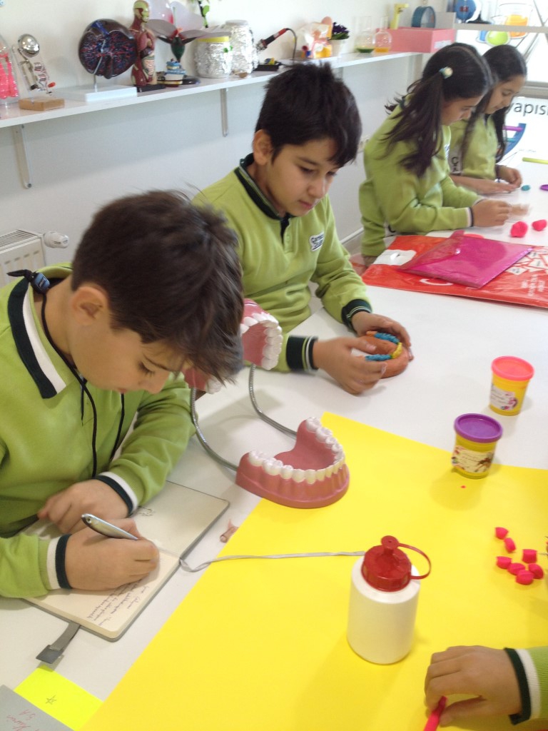 Ayrıca sindirim kanalı organlarını öğrenirken dişlerin farklı yapı ve görevde olduğunu yaptıkları diş maketleri ile pekiştirirken aynı zamanda eğlendiler.